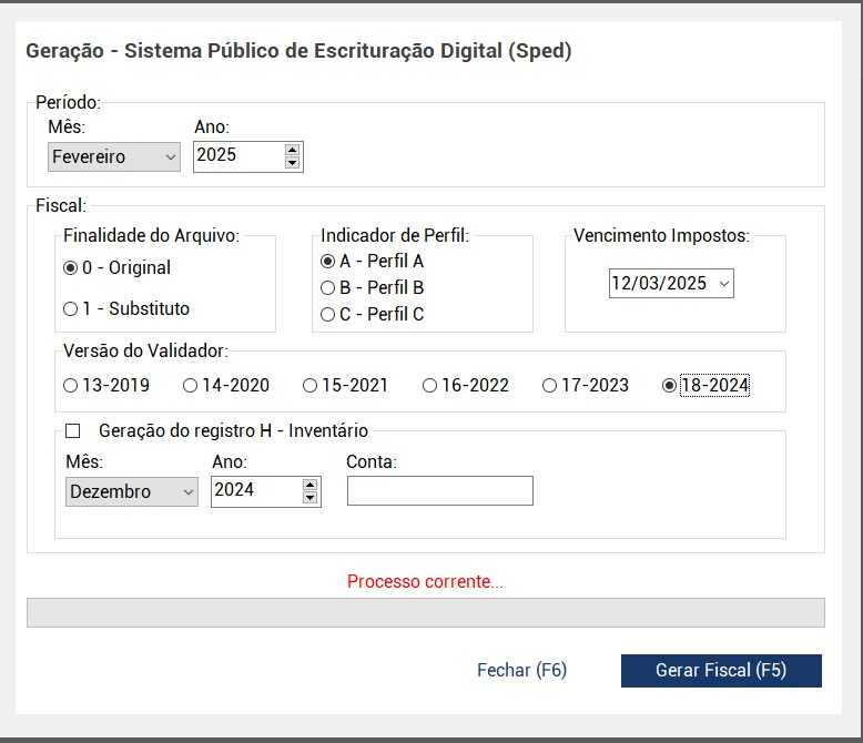 • Geração do SPED.