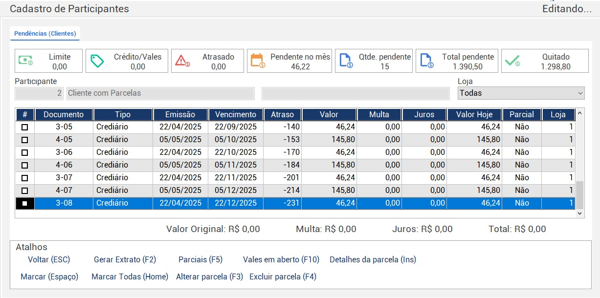 • Calcule juros e multa.